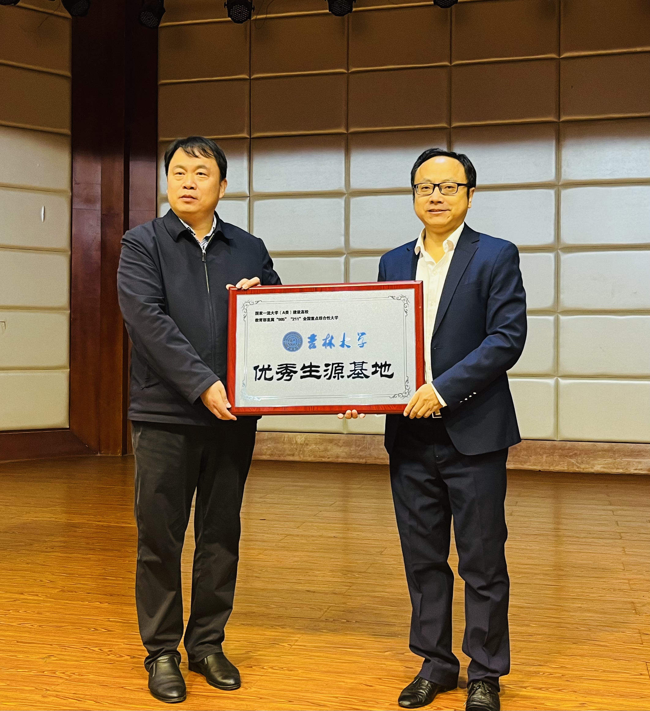 优秀生源基地牌匾。