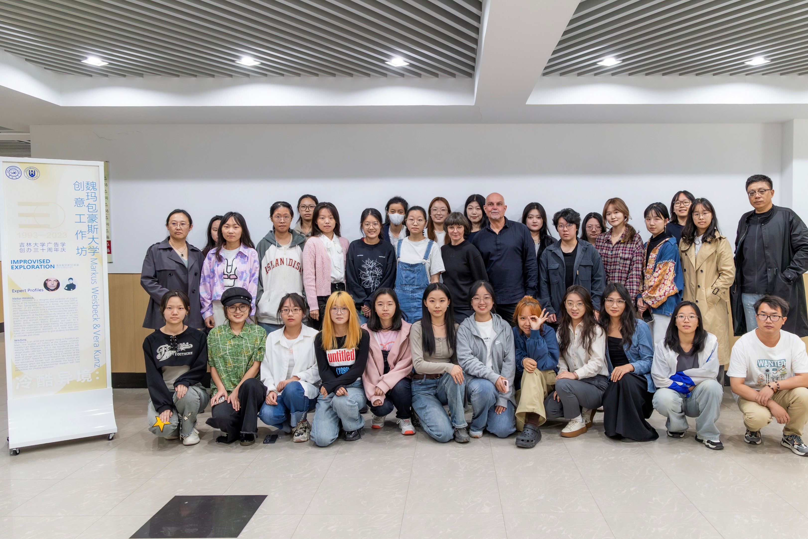 9月23日,Markus Weisbeck教授和Vera Kunz教授让同学们根据大家的作品制作创意海报,并配以标题和广告语。Markus Weisbeck教授和Vera Kunz教授逐一观看了同学们的海报作品,并耐心地指导同学们进行修改完善。最后,Markus Weisbeck教授和Vera Kunz教授为与同学们共同度过美好的三天而表示感谢。创意工作坊全体老师和同学们合影留念,为此次活动画上了圆满的句号。