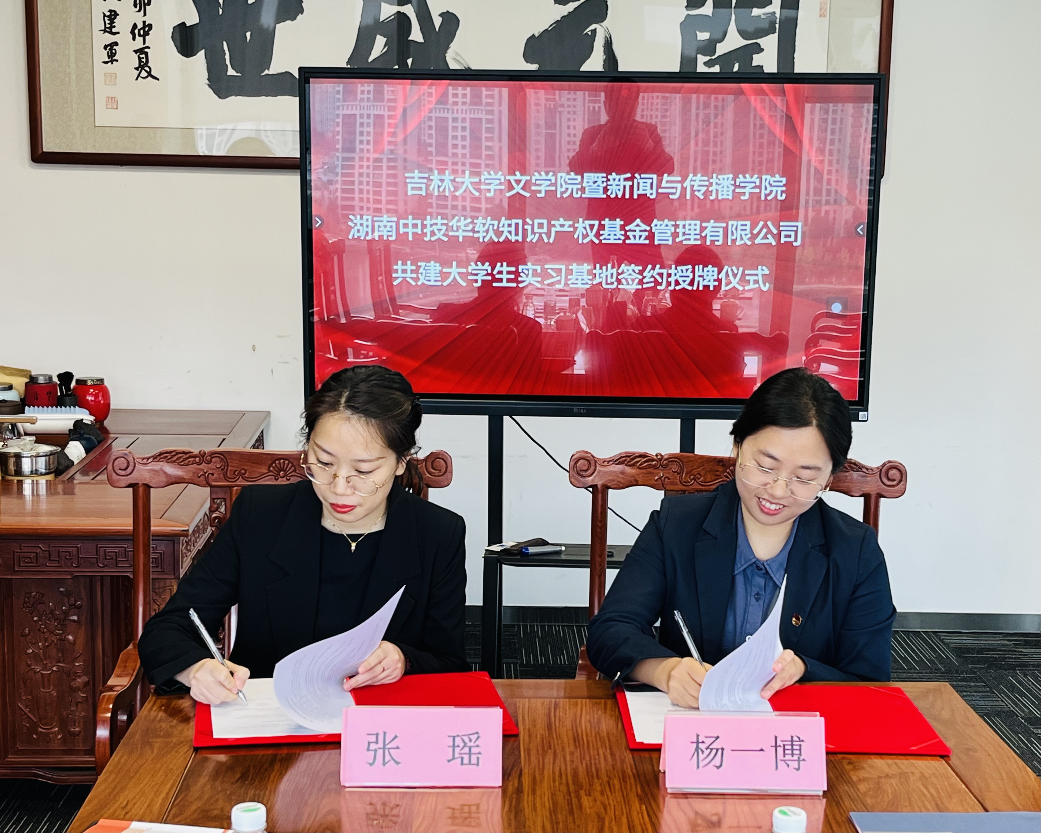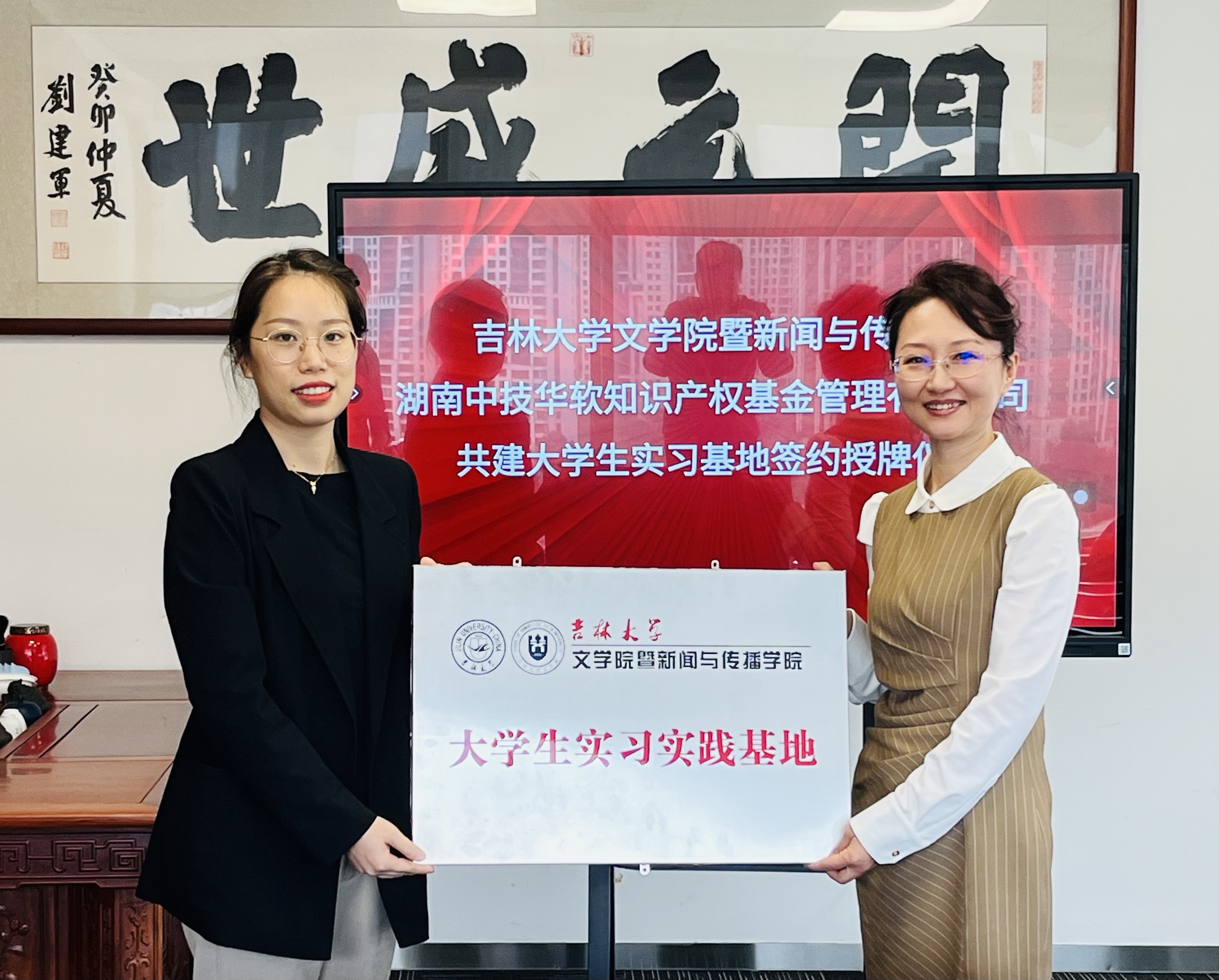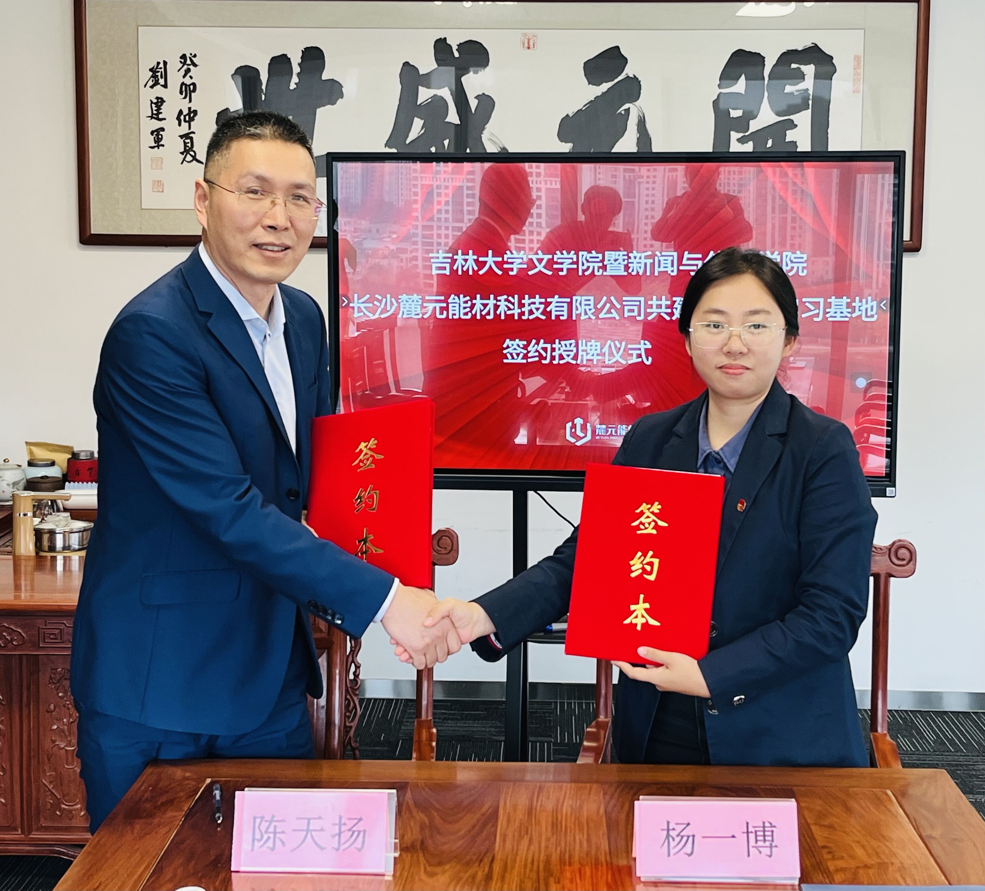 正式与长沙麓元能材科技有限公司、湖南中技华软知识产权基金管理有限公司签订大学生实习实践基地并举行授牌仪式。