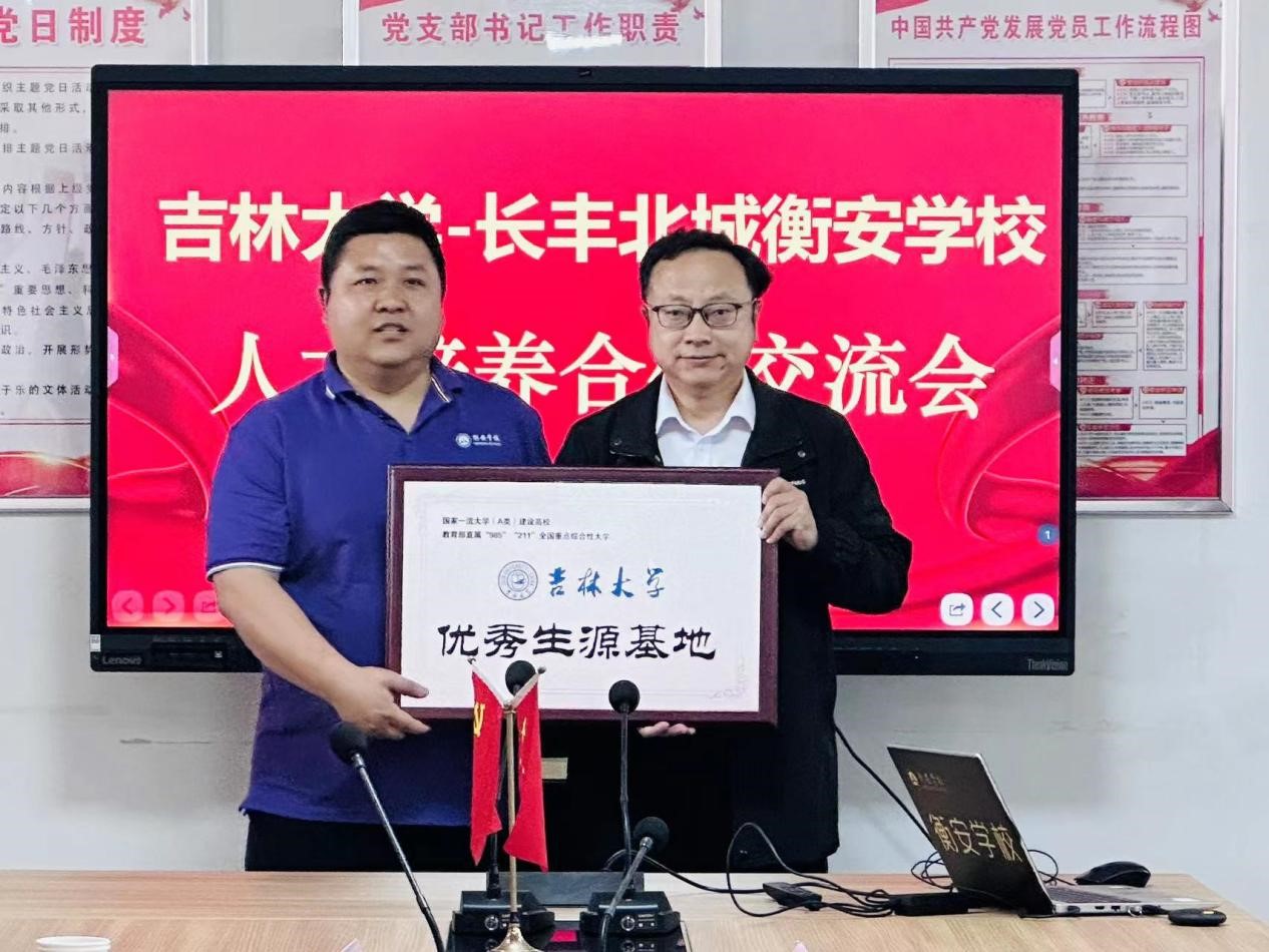 为衡安学校授予优秀生源基地牌匾。