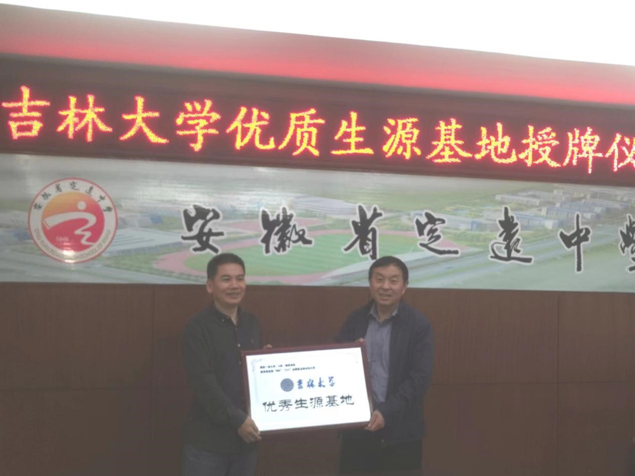 向定远中学授予了优秀生源基地牌匾。