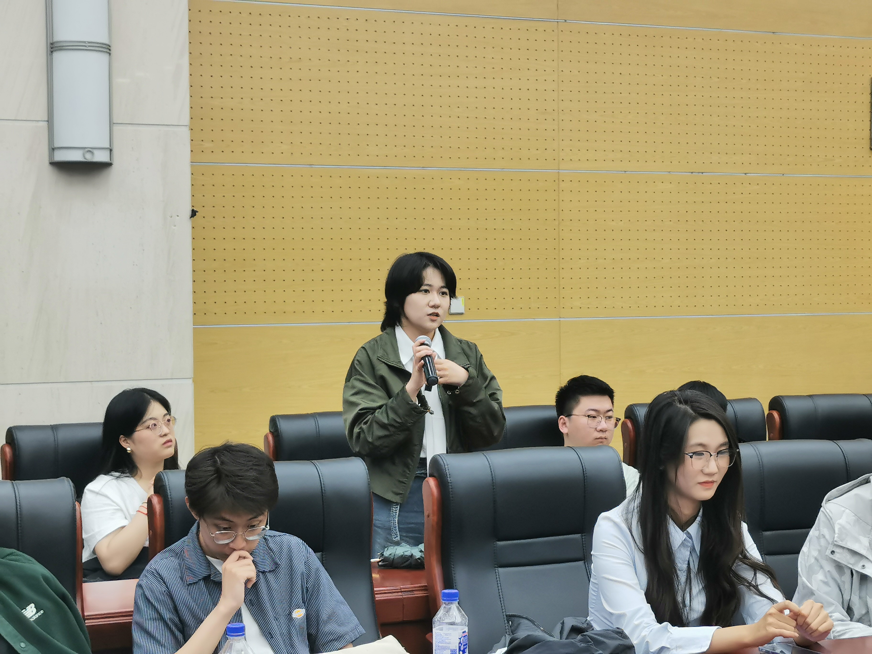 会议现场气氛热烈,不时响起阵阵掌声。2020级与2021级新闻学专业同学就保研面试经验、考研复习策略及就业心态调整和岗位选择等问题进行了深入具体的交流,刘炳辰同学以风趣的举例向师弟师妹们强调了“配得感”的重要性;陈思竹和尹冠文则结合自身经历表示,辅修专业对于就业或读研选择能够起到重要的拓展意义;周思岐介绍了保研本校的三种途径,并就相应的准备方式进行了经验分享。