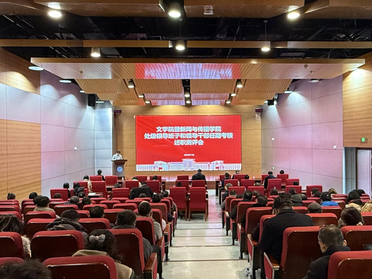 暨新闻与传播学院在中心校区国际大讲堂召开处级领导班子和处级领导干部任期考核述职测评会议。学院全体教职工参加会议,会议由学院党委副书记兼纪委书记刘卓主持。