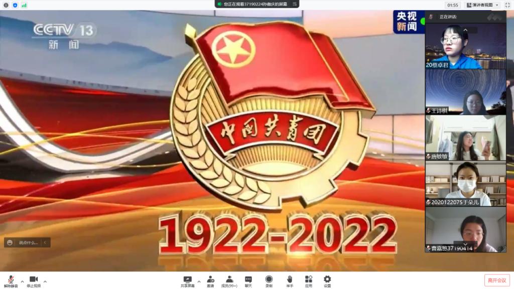 暨新闻与传播学院党员代表、团学干部、入党积极分子在集体在线上观看直播,认真聆听学习习近平总书记重要讲话,共庆中国共产主义青年团百年华诞。