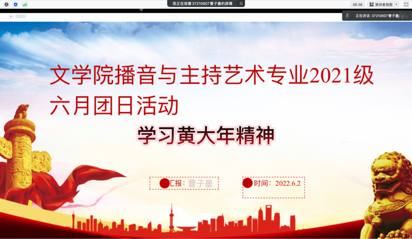 为培养广大团员心有大我、至诚报国的爱国主义情怀和潜心钻研、奉献无悔的使命意识, 6月初,2021级文传学子开展了六月团课的学习,本次团日活动主题为学习黄大年精神。团支书首先播放了黄大年精神的介绍视频,了解黄大年老师归国后的科研事迹,感悟其中满含的爱国热忱和科研毅力。而后同学们自行参观数字纪念馆,更加完整地了解了黄大年老师的生平事迹和毕生追求,启发同学们思索生命的价值和使命的意义。观后部分团员发表了观展感言。最后同学们一起学习了习近平总书记对黄大年先进事迹作出的重要指示。