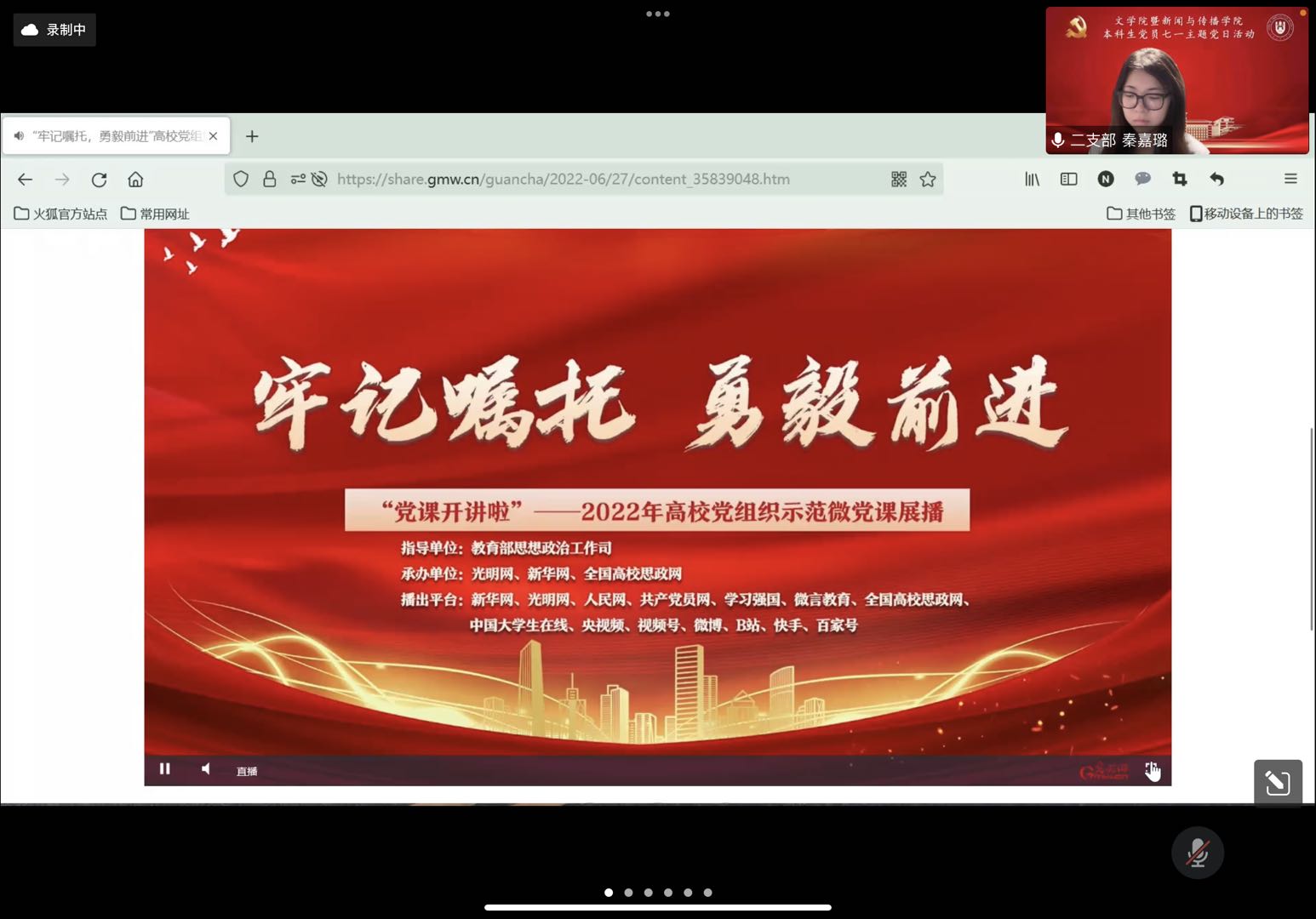暨新闻与传播学院开展本科生党员七一主题党日活动,全体本科生党员通过腾讯会议参与。