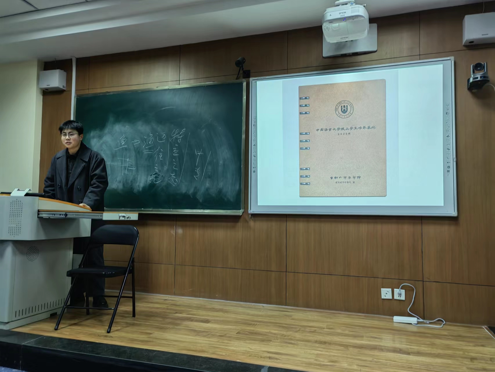 党委副书记杨一博老师、2022级中国语言文学拔尖基地班主任李静老师参会。班会共由两部分组成,第一部分为班主任李静老师主持的新学期寄语与学习生活交流,第二部分为4K影视