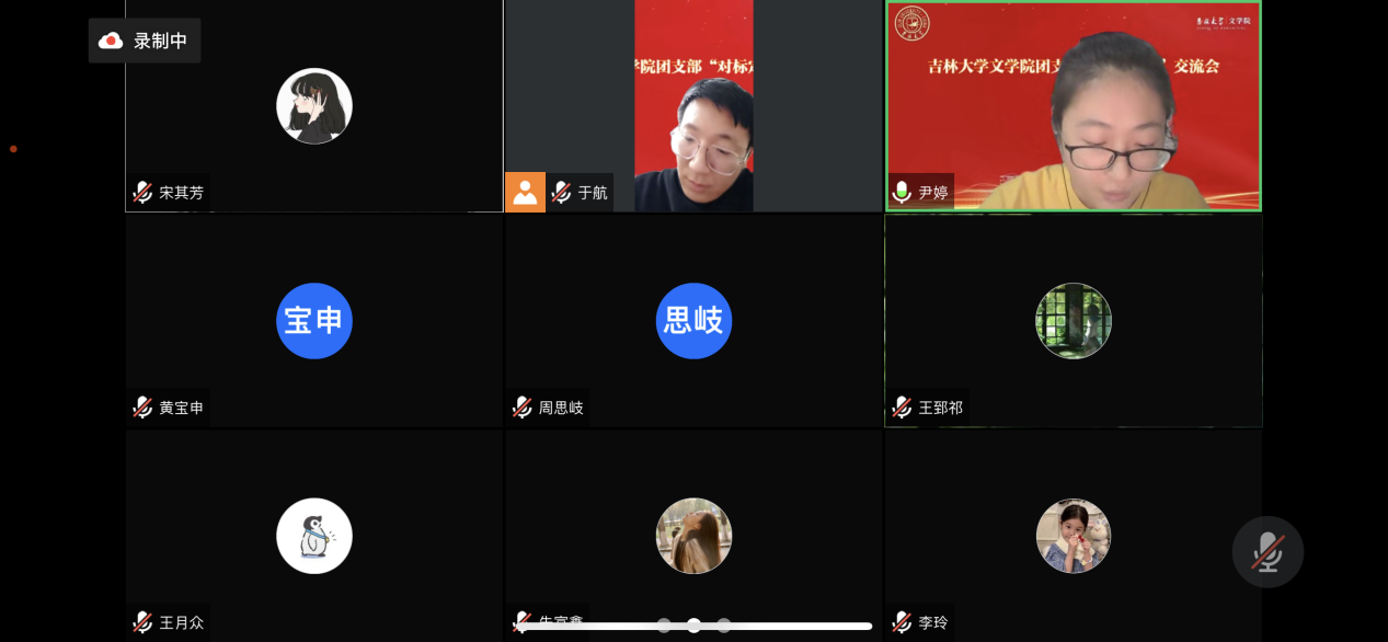 团委召开团支部“对标定级”线上交流会。四位本科生、两位研究生支部书记进行团支部情况汇报和互动交流。团委负责人于航老师、团委副书记朴东赫、宋其芳和黄宝申以及硕士研究生团务负责人王月众参加会议。会议由于航老师主持。