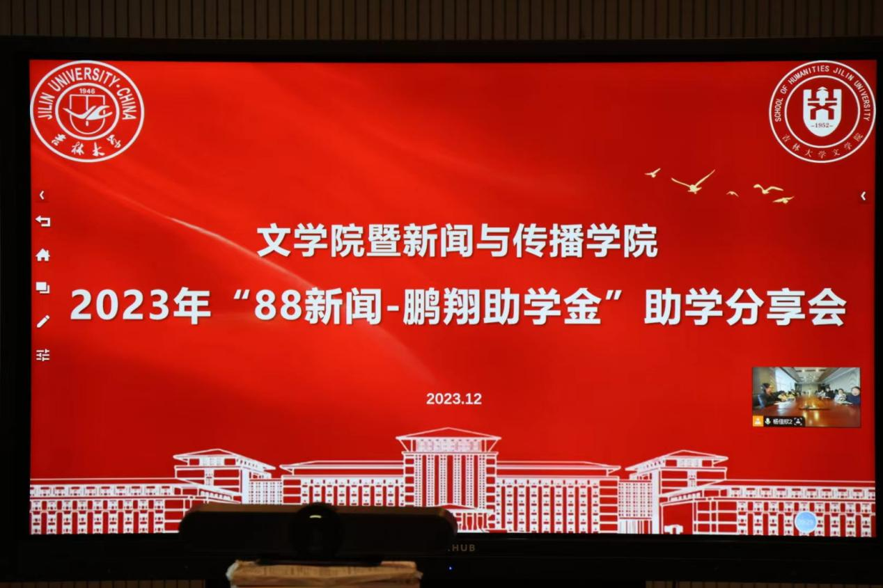 首个发展型助学金。该助学金致力于学院探索“新闻+”复合人才培养路径,同时也是吉大新闻学校友们的情谊所系和希冀所托。会上,2020级新闻学专业本科生赵璇、朴东赫、涂子慧、刘炳辰四位受助同学发言,分享了自己在修读双学位过程中对新闻学的探索以及受助感想,表达了对资助人肖冰校友的感激之情与传承“受助,自助,助人”精神的决心。