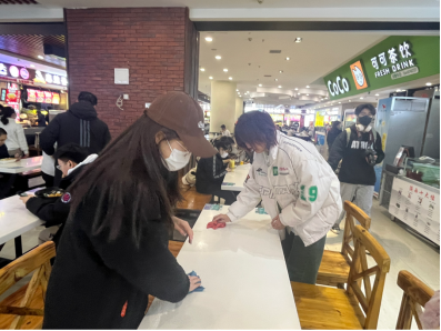 日新楼二楼餐厅、湖畔餐厅帮助食堂阿姨擦拭餐桌污渍,收拾餐桌垃圾,组织餐厅纪律,宣传餐桌礼仪。通过本次活动,同学们有了深深的感悟,立志要学习雷锋这种全心全意为人民服务、助人为乐 检节朴素、舍己为人做一颗“螺丝钉”,用实际行动,争当一个有爱心有义务感的好青年;2022级历史学团支部于3月1日至3月3日于4K影视
