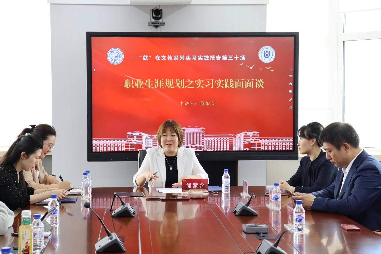 暨新闻与传播学院“就”在文传系列实习实践报告会第三十场《职业生涯规划之实习实践面面观》于东荣十楼会议室成功举办。此次活动邀请吉林省广播电视台教育广播女性节目组制作人熊紫含担任主讲嘉宾,由4K影视