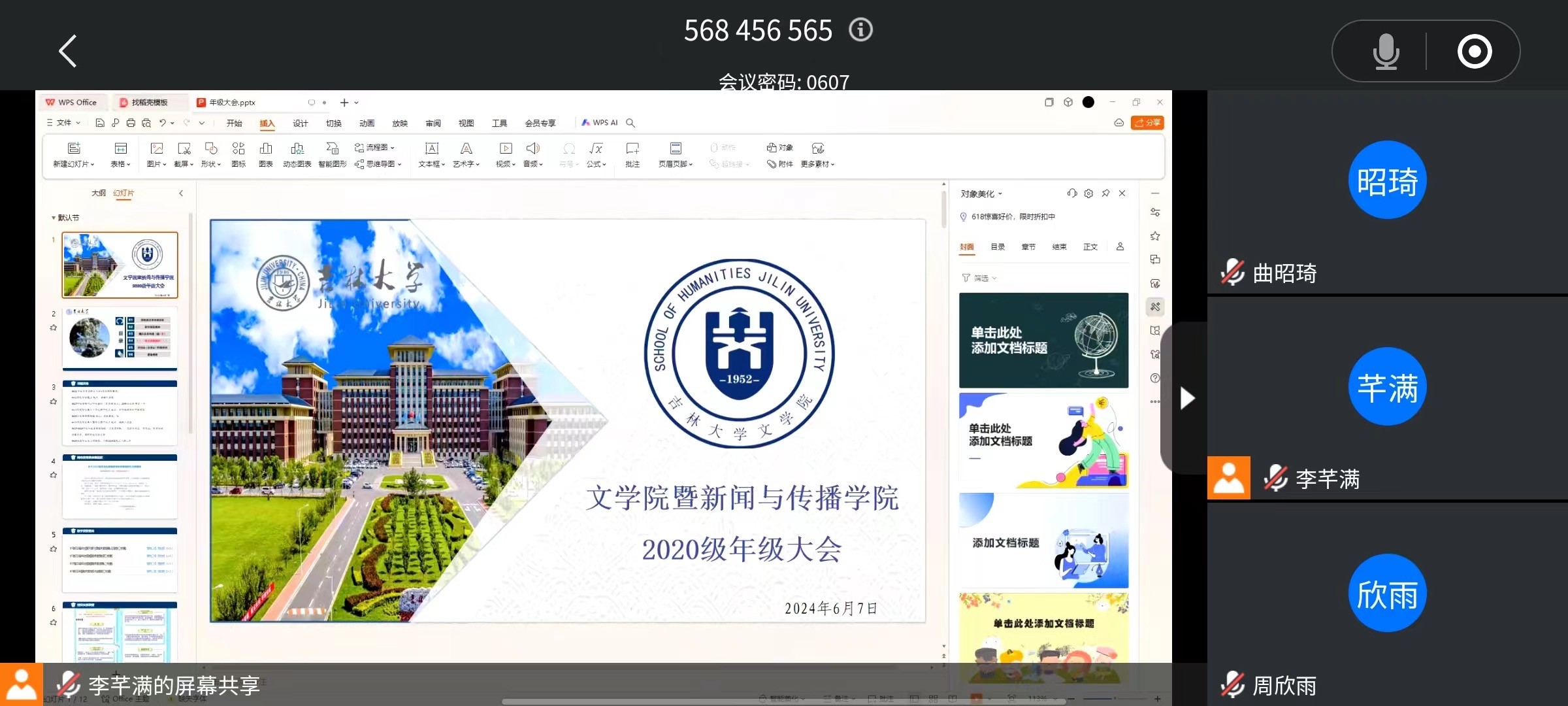 暨新闻与传播学院2020级本科生召开两次毕业季年级大会,年级辅导员李芊满老师主持会议,兼职辅导员曲昭琦和全体学生参会。