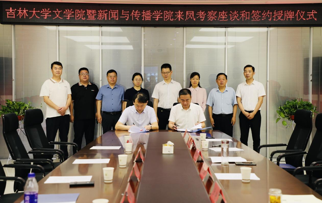 院长助理、校友办主任田鹏与凤阳县文化和旅游局党组成员、县文化馆馆长王兴签署了实习教育实践基地合作共建协议。会议尾声,双方与会人员于凤阳县图书馆前合影留念。