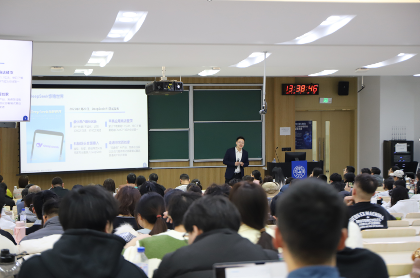 计算机科学与技术学院徐昊教授主讲,新闻与传播学院副院长姜明主持。这既是2025年《人工智能基础》课程的第一讲,也是一场关于当下人工智能发展热点的专题分享,在当今跨学科教育的背景下助力学生构建面向智能传播时代的技术认知框架。