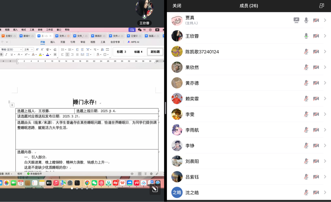 暨新闻与传播学院团学组织4K影视通过线上会议召开3月选题会,4K影视副主任贾真主持本次会议,4K影视指导老师、兼职辅导员曲昭琦和4K影视全体学生记者参会。