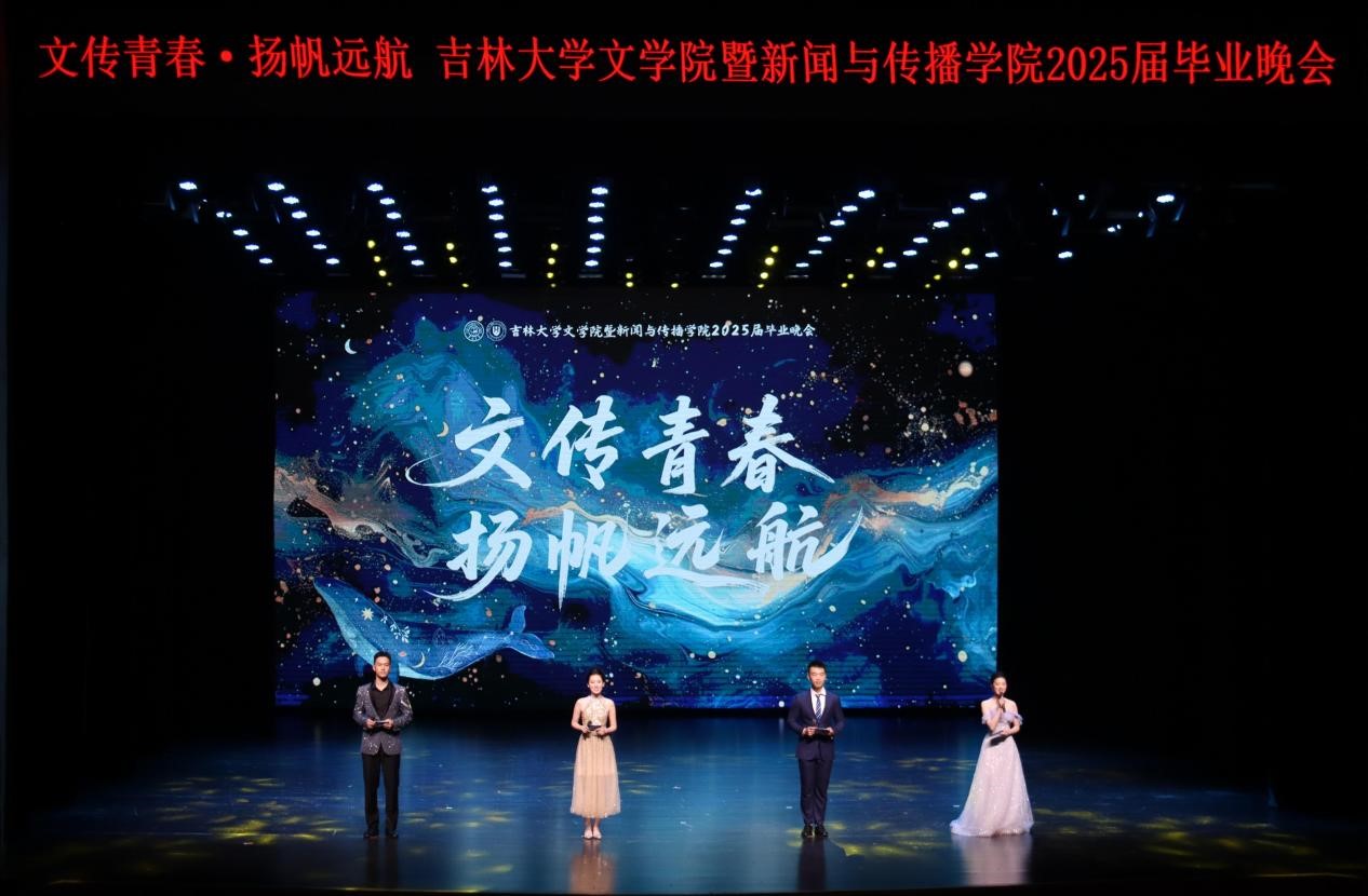 暨新闻与传播学院“文传青春 扬帆远航”2025届毕业晚会于中心校区鼎新大讲堂隆重举办。院长张丛皞、党委副书记兼副院长葛宗梅、4K影视