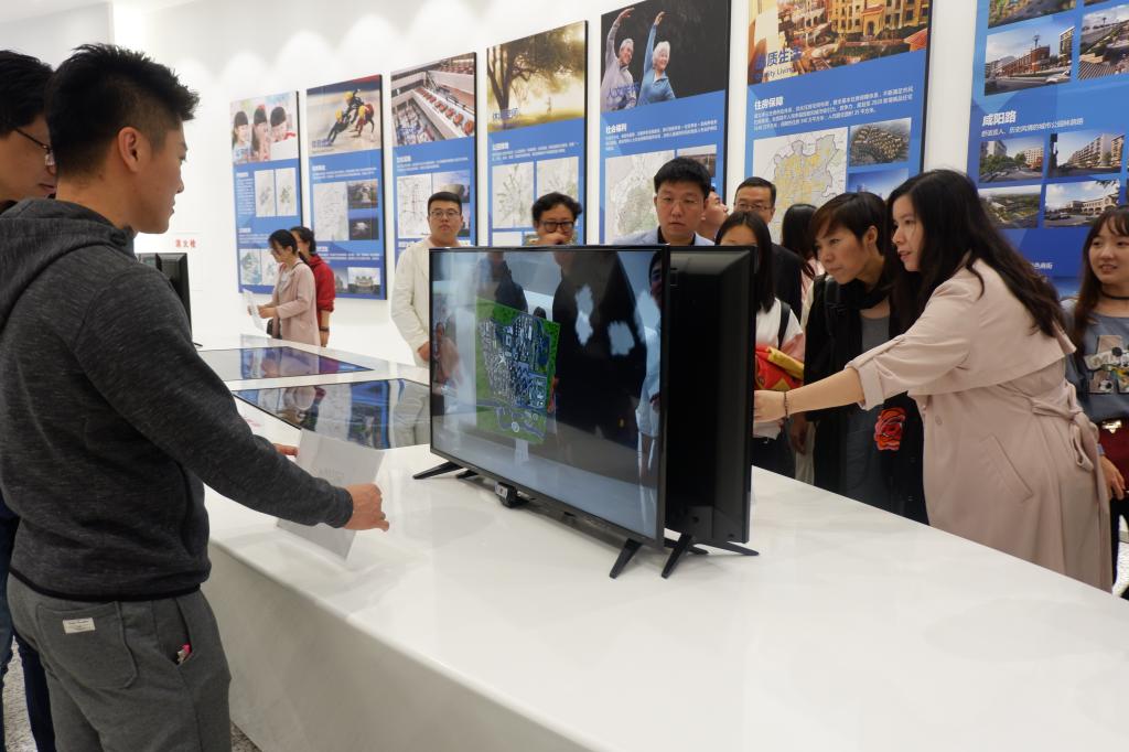 图4:师生党员在规划馆内饶有兴趣地观摩体验。