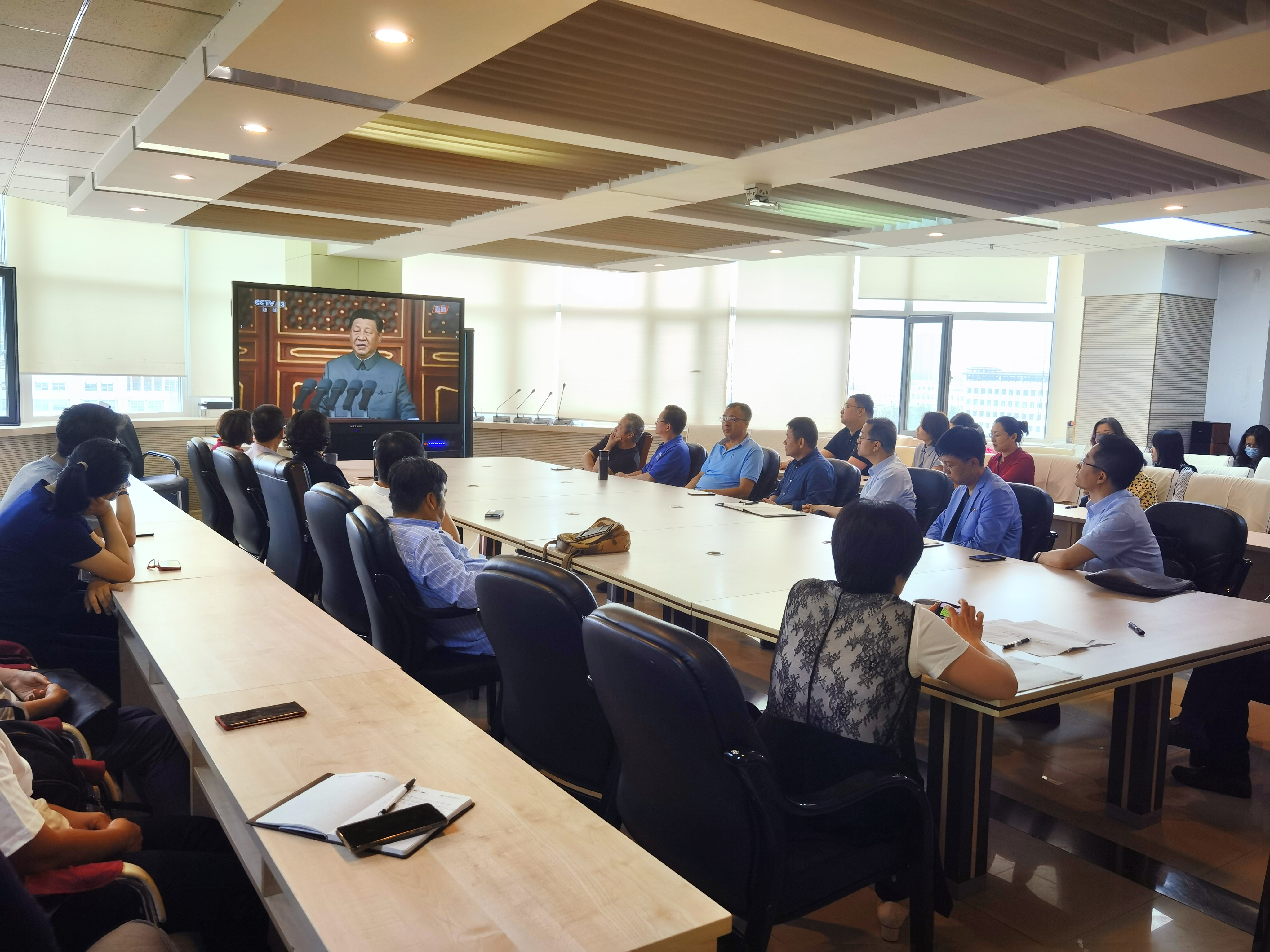 师生党员集中收听收看庆祝中国共产党成立100周年大会直播实况。
