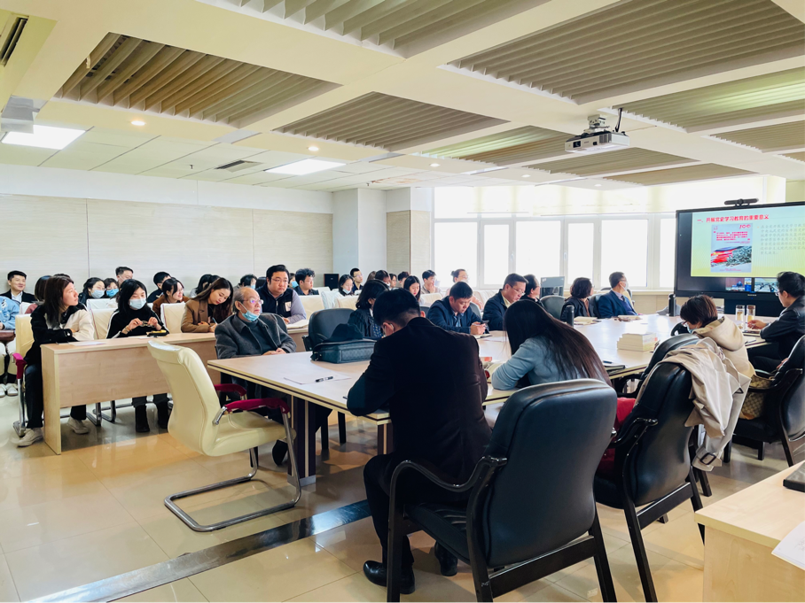 党委组织学院全体处级领导干部、党委委员、纪委委员、各系教工党员、学生党支部书记和支部委员于东荣十楼会议室在线观看视频直播,进行学习。