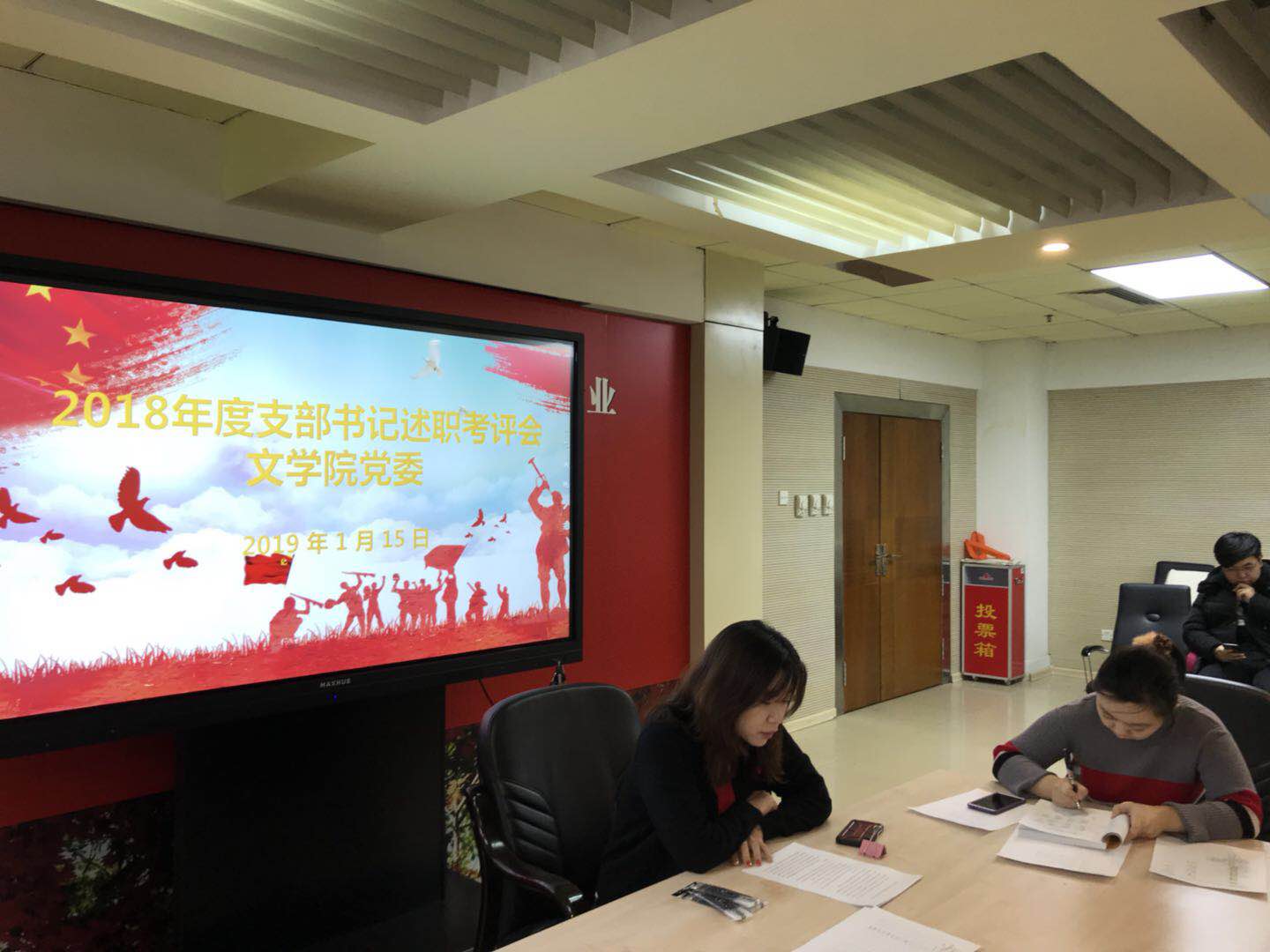 中国史、世界史系教工党支部徐萍、行政教工党支部张谦谦、国际语言学院教工党支部屈菲共三位教工党支部书记依次进行述职。教工支部书记就2018年党建工作完成情况、党支部组织生活、2019年党支部工作计划以及存在的不足等工作进行了详细介绍。