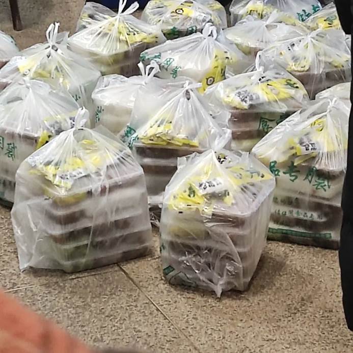 志愿者王迪说:“清晨天刚朦朦亮,点开手机,宿舍封楼的消息瞬间逐走了困意,我心里暗暗为吉大能不能扛住这一关担忧,四万学生的吃饭问题是个大考验啊。很快,文传的志愿者工作群里发出了号召动员志愿者为同学抬饭的通知,脑子里冥冥的使命召唤驱使手指打下了“报名!”。戴上口罩和室友支援的一次性手套,穿过弥漫的消毒水的走道,文传的姐妹们来到一楼宿舍口,排成两队,等待着为同学抬饭。排队间隙,不断更新的暖心防疫通知,渐渐打消了大家心头的不满和牢骚,短短几个小时,四万份早餐,准时送达,我惊叹吉大速度!这次抬饭我们负责二四六层,21级的同学负责二楼送餐,早餐被整齐打包在纸箱里,我们两人协助,把一箱箱早餐往楼上抬,为了减少直接接触,我们采取敲门问同学需要的餐份,把餐盒码在寝室门口,自行拿取。早晨的困意的抬饭的乏意在同学们从寝室里传来的一声声“谢谢你们”里烟消云散。突然而至的首次送餐任务,不免有疏忽和漏洞,“455寝室少两份餐”“清真餐派送不到位”…大家在群里出谋划策以求最小的失误和最大的效率。的确,“吉人自有天相”不是噱语,每一个吉大人伸出援手,汇聚的力量足以扛过疫情的考验!吉林自有吉临时,长春定复往常春!”