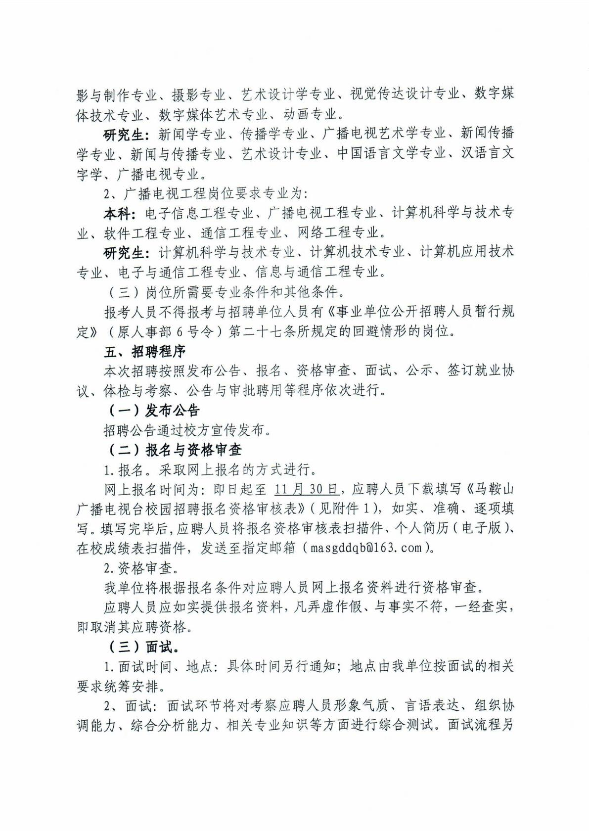 马鞍山广播电视台面向部分高校公开招聘紧缺专业应届毕业生公告