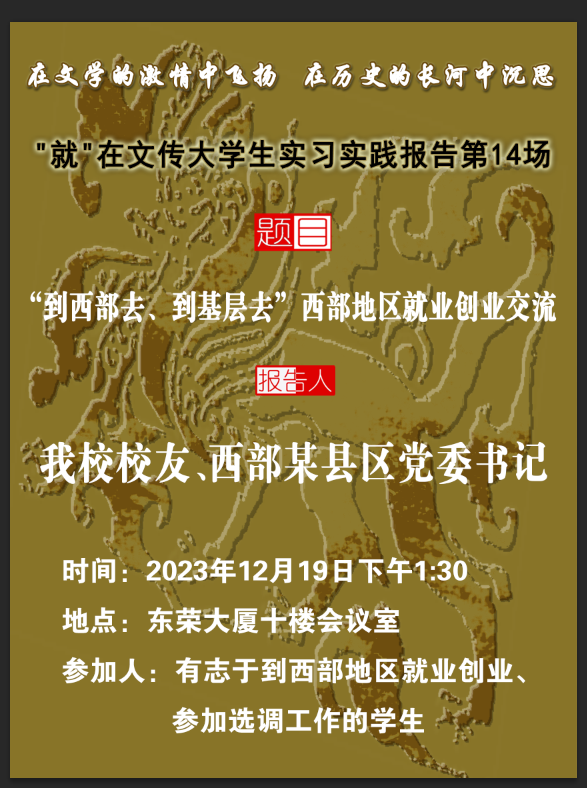 在文学的激情中飞扬 在历史的长河中沉思”就”在文传大学生实习实践报告第14场——到西部去、到基层去”西部地区就业创业交流会