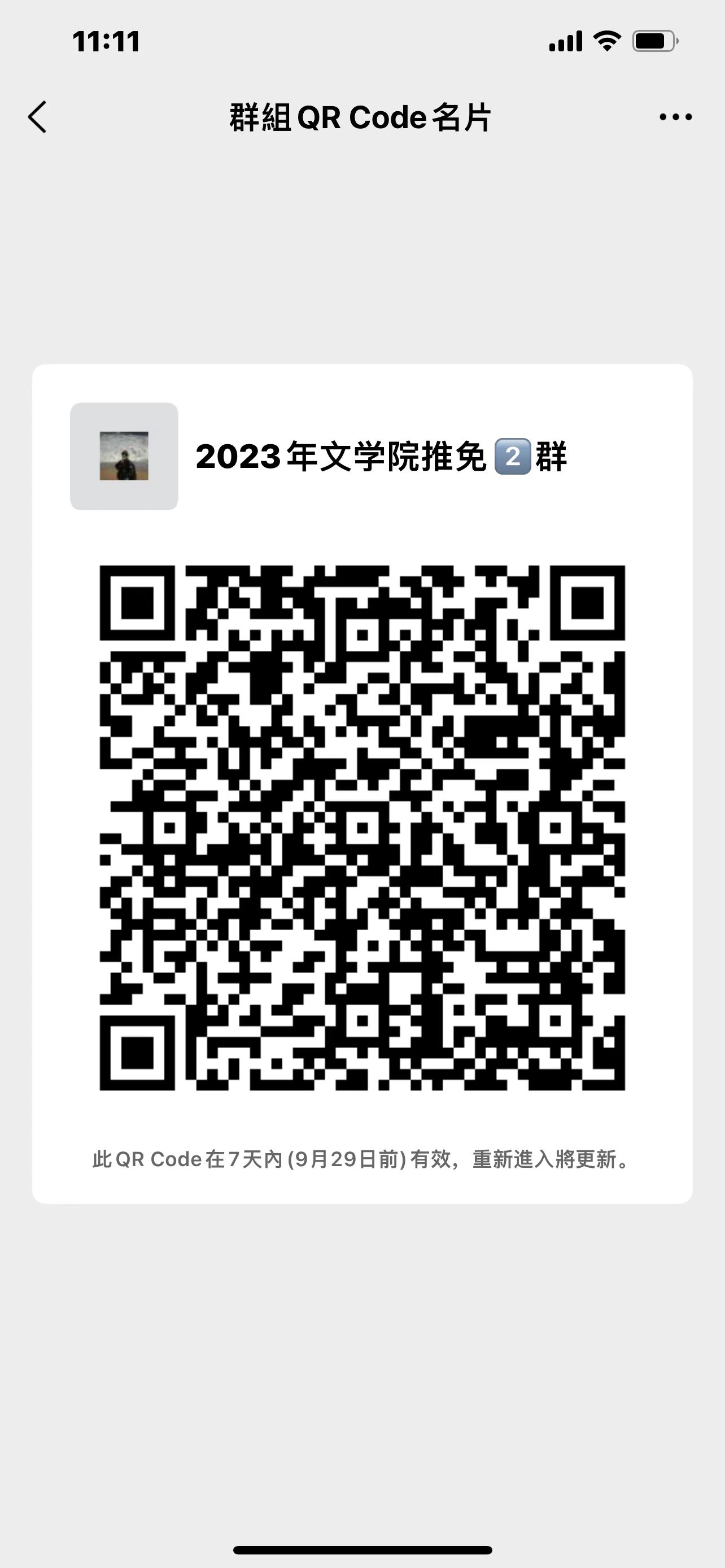 以上材料扫描件于2022年9月24日上午11:00前发送至邮箱[email protected](学硕)[email protected](专硕)。邮件命名为“姓名-报考专业-推免报名材料”,如“李四-中国史-推免报名材料”,材料分别按序号命名后以压缩包形式发送。收取材料截止时间以邮箱收到邮件显示的时间为准。参加推免的同学加入20234K影视